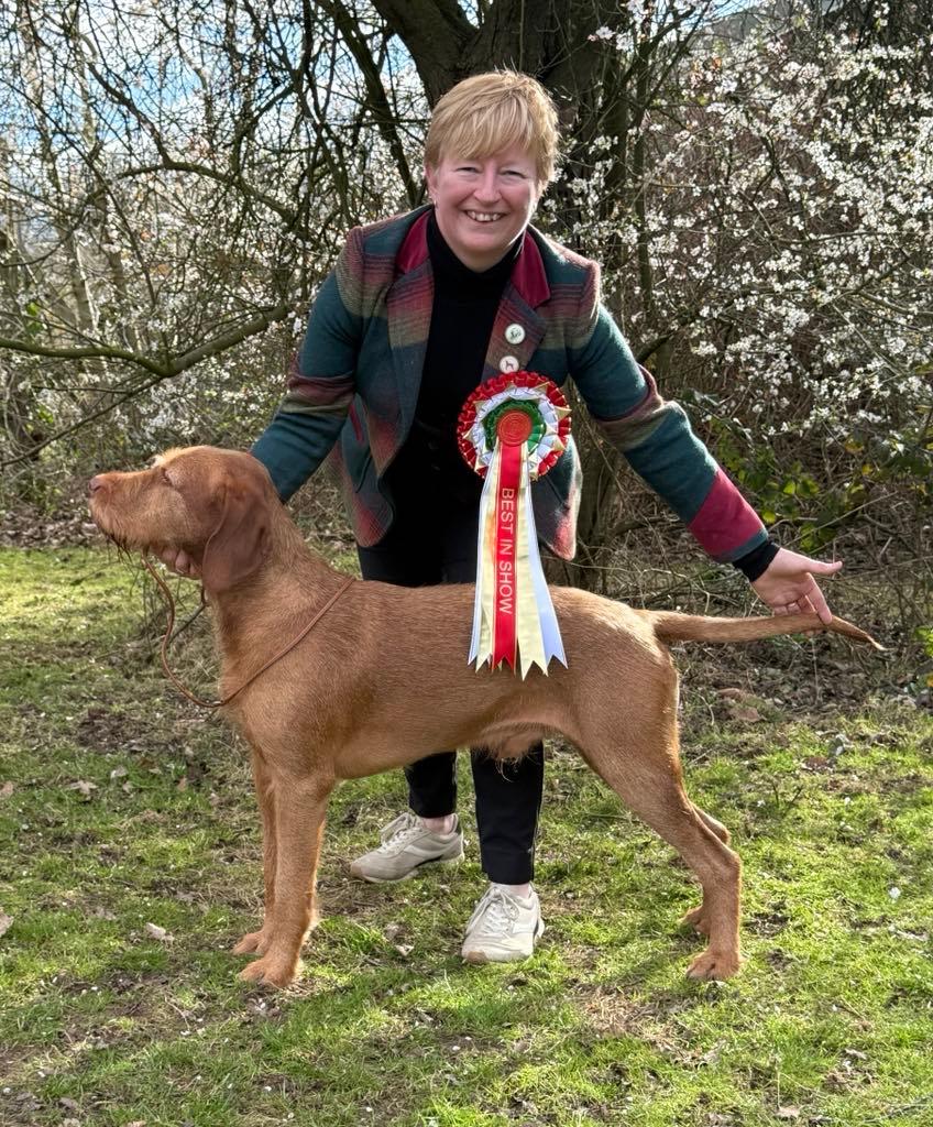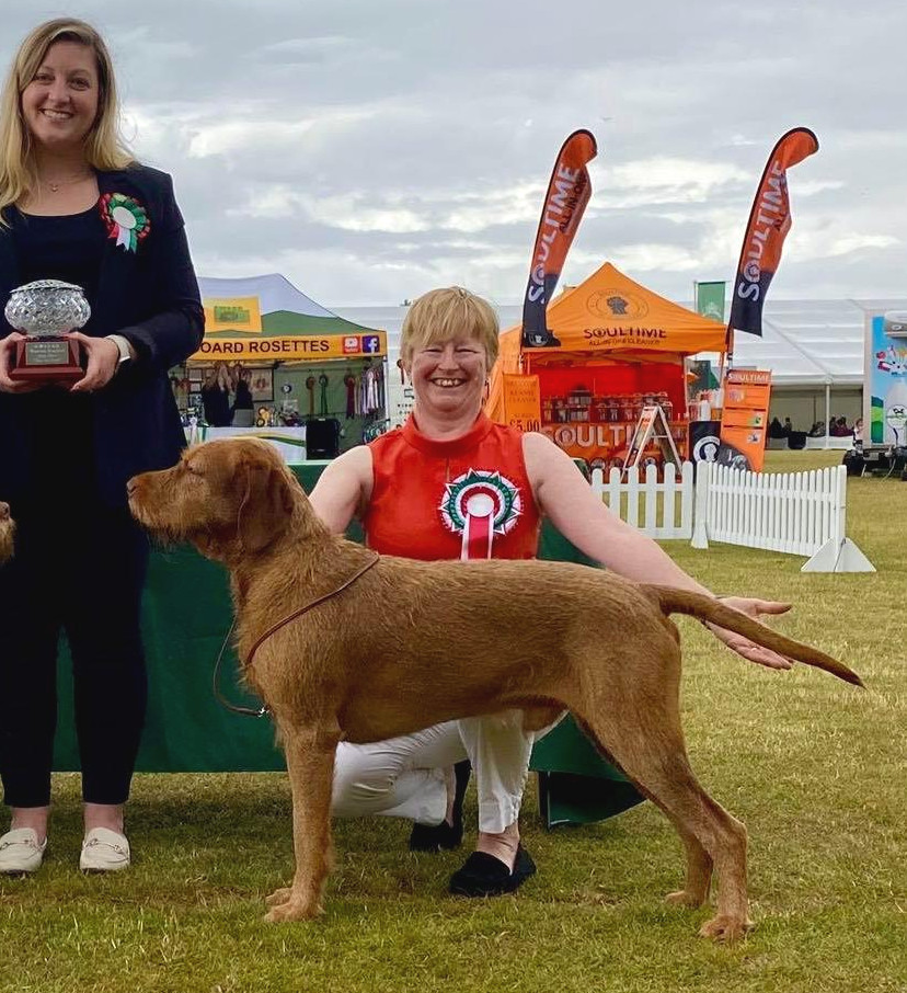 A super day for Sh Ch Belatarr Kodiak at this year’s Hungarian Wirehaired Vizlsa Association Open show, winning Best Dog and then going Best in Show under judge Deborah Hamlyn.