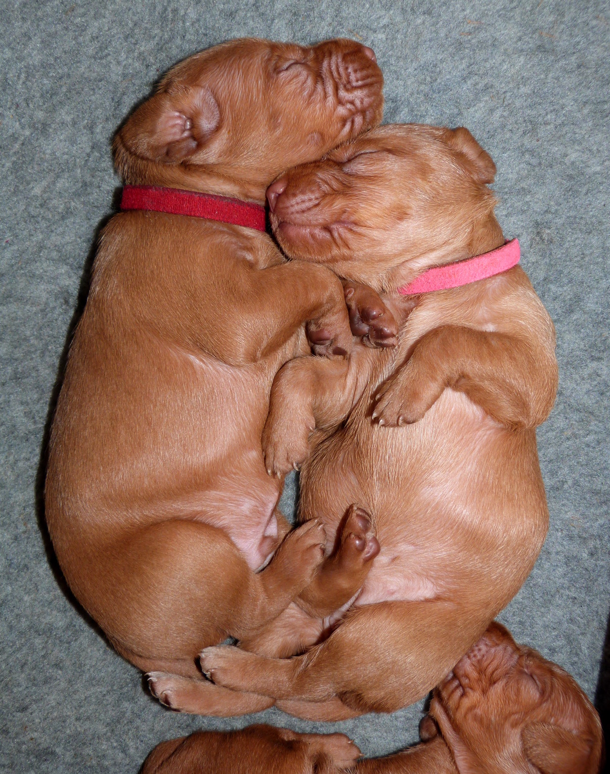 Puppies – week 2. » Week 2 – Mr Red & Miss Pink snuggle