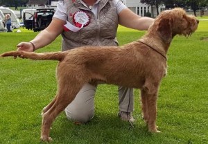 This is a long-awaited and carefully planned union that we hope will build upon the strengths that we have established with our very successful previous litters. Aja, sired by Champion Zoldmali Szeles Morganna JW, is a very feminine girl who combines an exceptionally pretty head with a superb, deep-russet wire coat and has the most wonderfully affectionate temperament – a constant joy to live with!