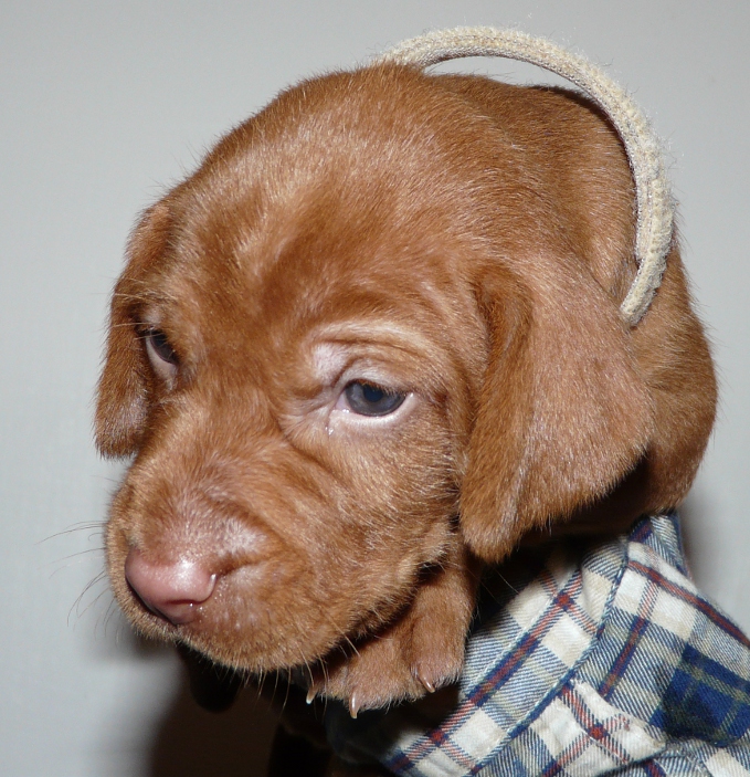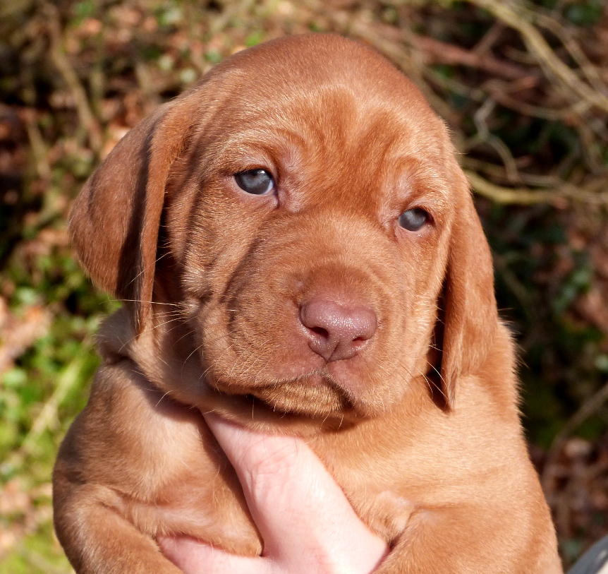 The last two days have seen some wonderful Spring sunshine arrive in Devon allowing us to get the pups outside to experience the big wide world for the first time. The thermometer showed 70 degrees F in the sunshine and the pups were able to spend 4 hours in the fresh air on two successive afternoons. Sadly the forthcoming weather forecast suggests that they may not have another opportunity to get outdoors again for the foreseeable future, but we were just delighted to see them frolic in the fresh air and were also able to take this weeks portraits outside too.