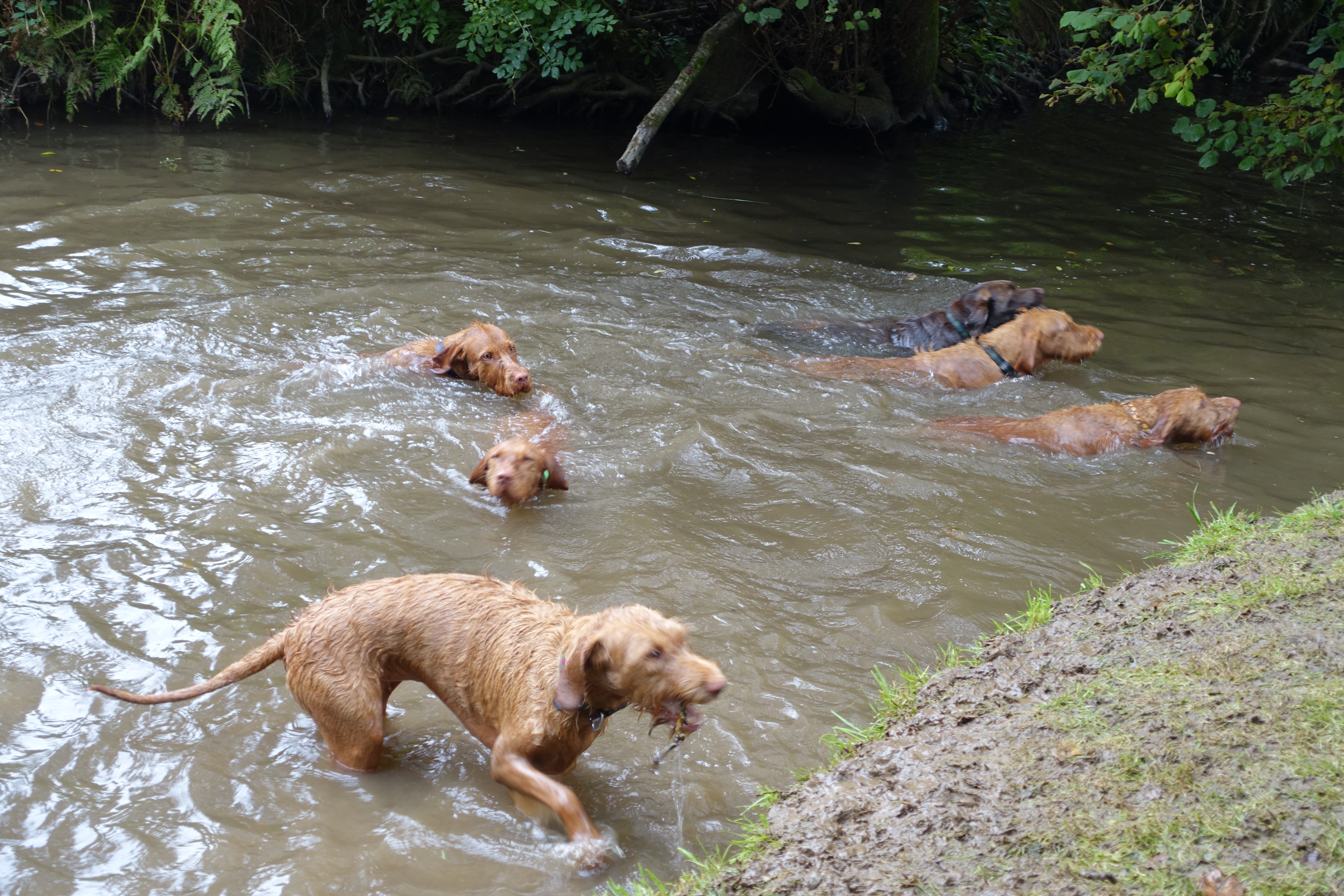 Cuba is approaching 13 weeks old and has excitedly splashed and paddled in the river before, but today she first retrieved a stick and then went for a series of full-on deep water swims, demonstrating an amazing technique right from the very first attempt!