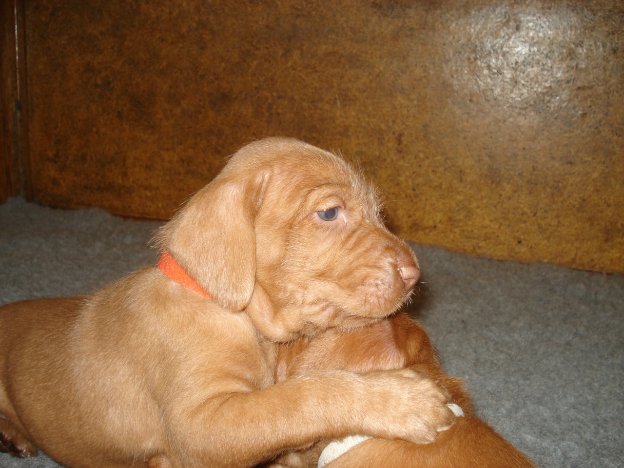 Meanwhile teeth are erupting and everyone wants to chew everything, so new rubber chew toys and plastic bottles are going down a treat, when human arms, toes and ears are not available. Their nails are still being filed regularly too, and, when they are sleepy enough, each pup can be gently wiggled upside-down on your lap whilst having their teeny-tiny toes attended to, as beautifully illustrated below by a gently snoozing Mr Blue.
