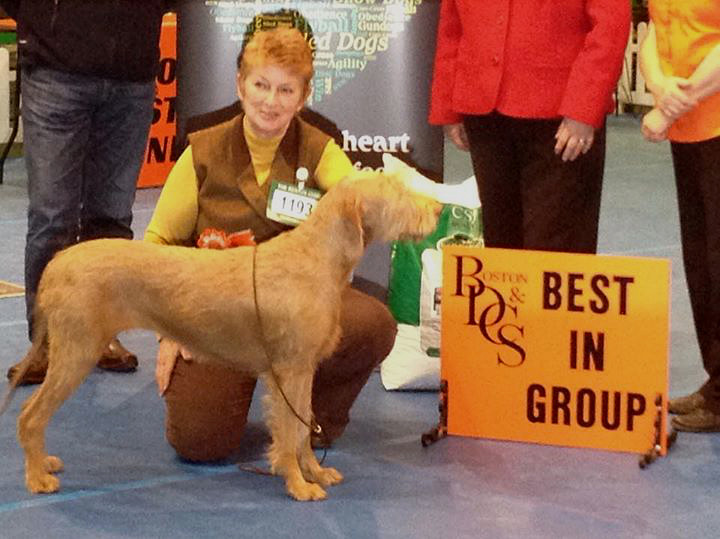 Many, many hours later Billie then thrilled us beyond measure when she also won the Gundog Group under judge Aidine Howes – the first and only time EVER that a Wirehaired Vizsla has been awarded Best Gundog at a General Championship show and so the highest show level reached by any HWV in the UK.