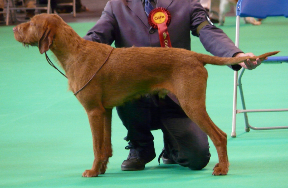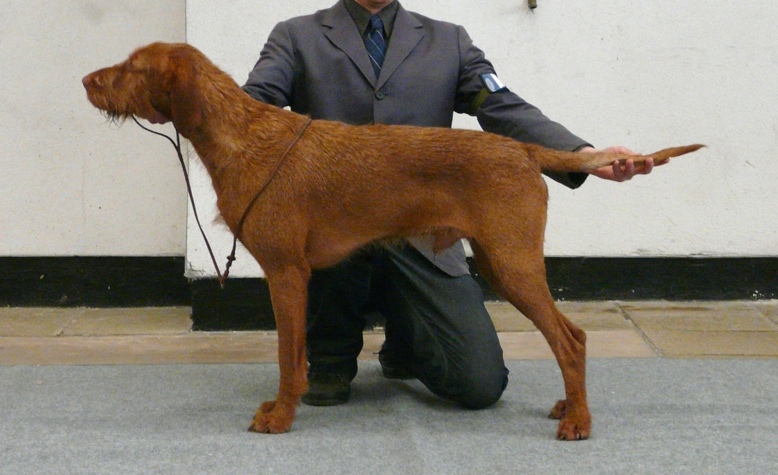 “A superb representative of the Hungarian Wirehaired Vizsla carrying many of the characteristics the breed demands, nice biddable, expressive well-worked head, correct size, well-balanced in every department, covering the ground with purposeful, accurate ground-covering movement. I also awarded him Gundog Group 2 and Puppy Gundog Group 1.”