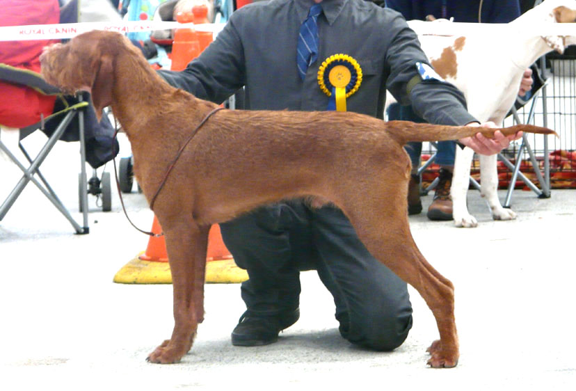 “A superb representative of the Hungarian Wirehaired Vizsla carrying many of the characteristics the breed demands, nice biddable, expressive well-worked head, correct size, well-balanced in every department, covering the ground with purposeful, accurate ground-covering movement. I also awarded him Gundog Group 2 and Puppy Gundog Group 1.”