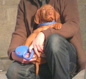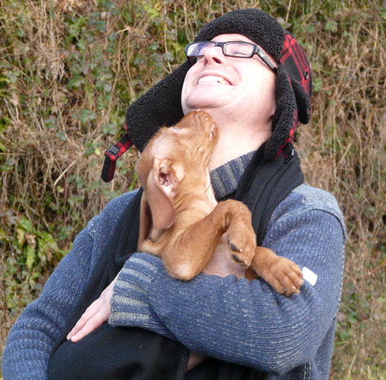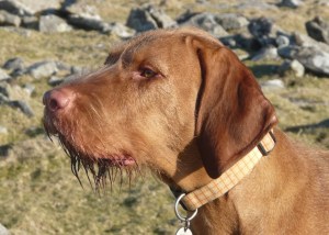Memorable recent canine HPR interactions for Phoenix have included numerous Weimaraners in a variety of shapes, ages and sizes, and a gorgeous pair of GSP (German Shorthaired Pointer) boys with whom she had a great romp whilst we owners all held a mutual appreciation meeting. She also took a particular shine to Merlin, the spectacular Irish Wolfhound whom we met at ringcraft. Merlin was rescued from a pub in Liverpool where he was being “kept” by a couple of teenage boys who mistakenly thought that because Wolfhounds were very big, they’d make good fighting dogs. Wolfhounds are *very* gentle and who knows what horrors would have befallen Merlin if he hadn’t been scooped up and delivered to his new and very loving home. It’s nice to hear of a happy ending for a change…