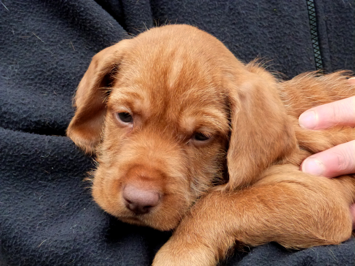 After being spoiled by last weekend’s Spring sunshine and unseasonal warmth we’ve been plunged back into the more typical near-freezing wet and overcast English weather this week. We still wanted to take the pup portraits outdoors, but the poor mites were pretty chilly and less than impressed, and the resulting images certainly don’t have the sunny glow or depth/accuracy of colour that we captured last week. Still, the boys are girls are all coming on very nicely and have enjoyed a lovely week indoors near the fire whilst a succession of daily visitors arrive for those all important cuddles and snuggles socialization exercises. 🙂