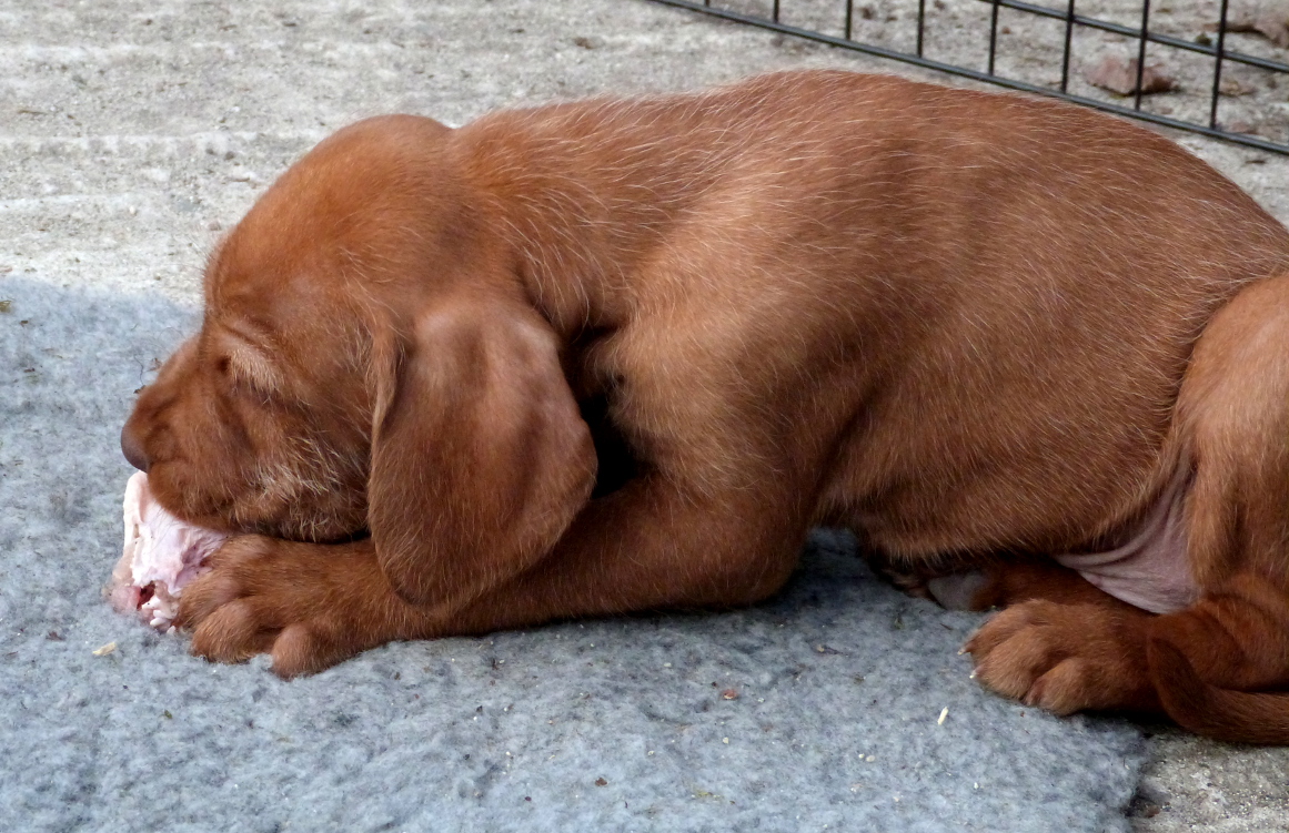 The pups (and their now needle-sharp teeth) took to them with huge enthusiasm and quite a bit of curiosity, excited at the prospect, yet unskilled at how to tackle such a large prey item. Approx. 60 mins later they had figured out what to do and all meat had been stripped and consumed and all bones had been cracked and (mostly) swallowed. Time, then, for a long and satisfied snooze for all of the babies. By the end of the week, though, they had all grown considerably more savvy at tackling their new foodstuff, and today’s wings were dispatched within about 15 mins or so.