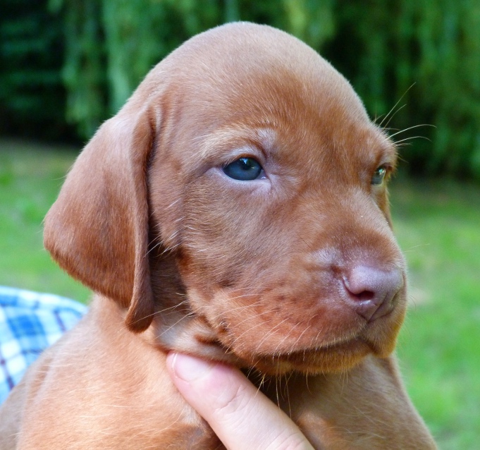 The last two days have seen some wonderful Spring sunshine arrive in Devon allowing us to get the pups outside to experience the big wide world for the first time. The thermometer showed 70 degrees F in the sunshine and the pups were able to spend 4 hours in the fresh air on two successive afternoons. Sadly the forthcoming weather forecast suggests that they may not have another opportunity to get outdoors again for the foreseeable future, but we were just delighted to see them frolic in the fresh air and were also able to take this weeks portraits outside too.