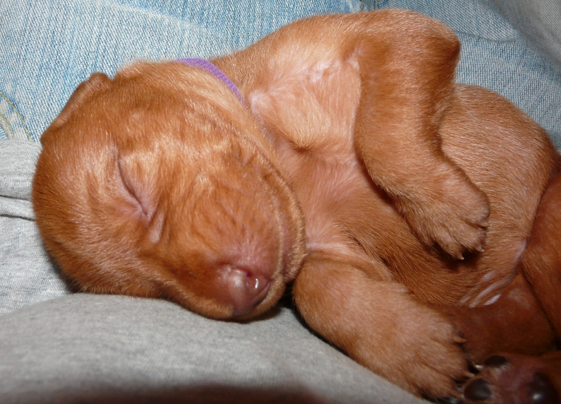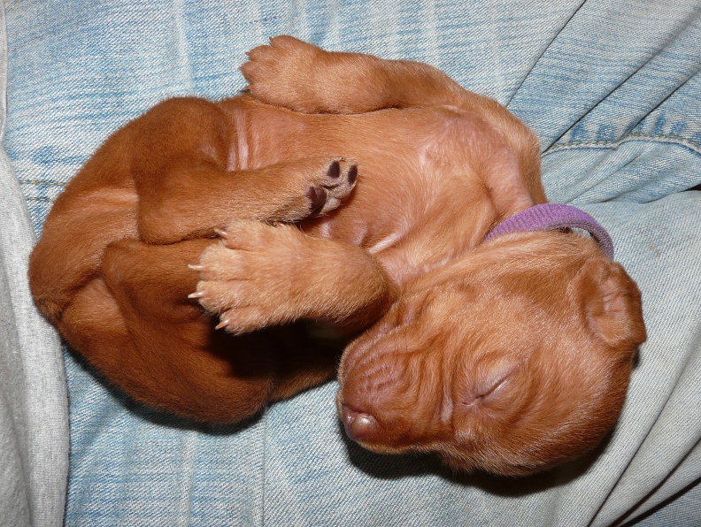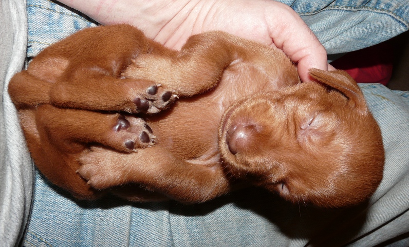 Meanwhile teeth are erupting and everyone wants to chew everything, so new rubber chew toys and plastic bottles are going down a treat, when human arms, toes and ears are not available. Their nails are still being filed regularly too, and, when they are sleepy enough, each pup can be gently wiggled upside-down on your lap whilst having their teeny-tiny toes attended to, as beautifully illustrated below by a gently snoozing Mr Blue.