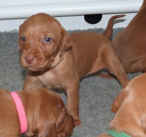The pick of Phoenix & Mingus’ recent litter Lyra (formerly Miss Lime, for our puppy watchers!) is an absolutely gorgeous girl with her fathers deep red wire coat and a completely unflappable confidence in everything that she does.