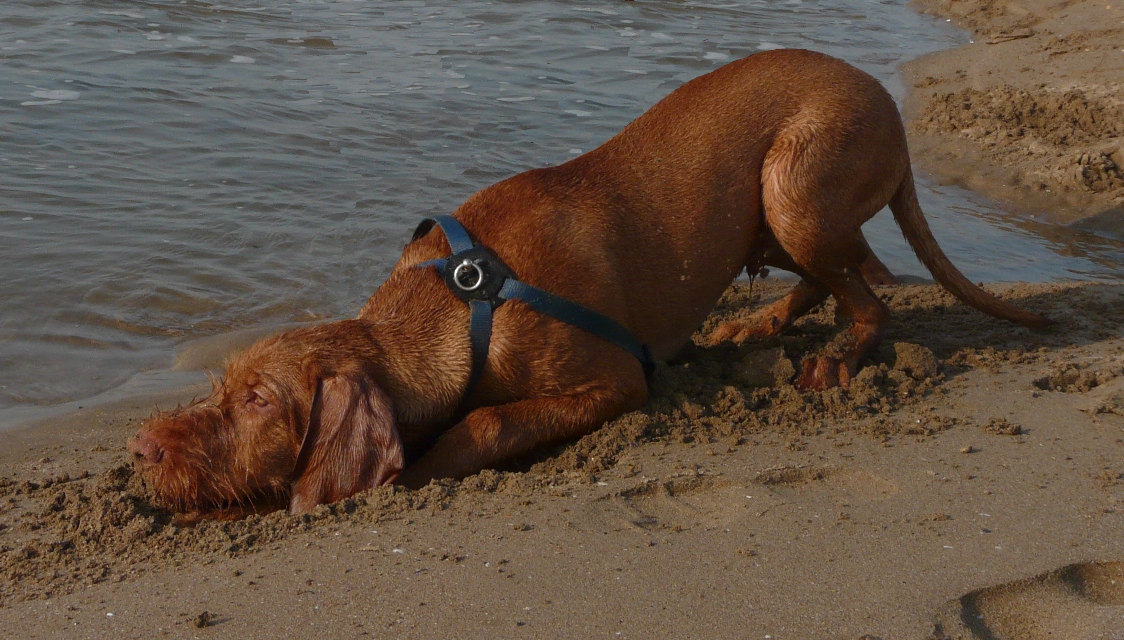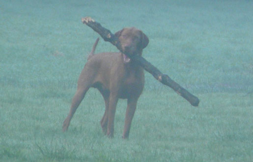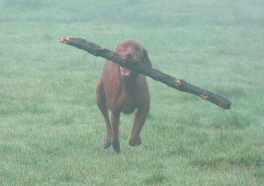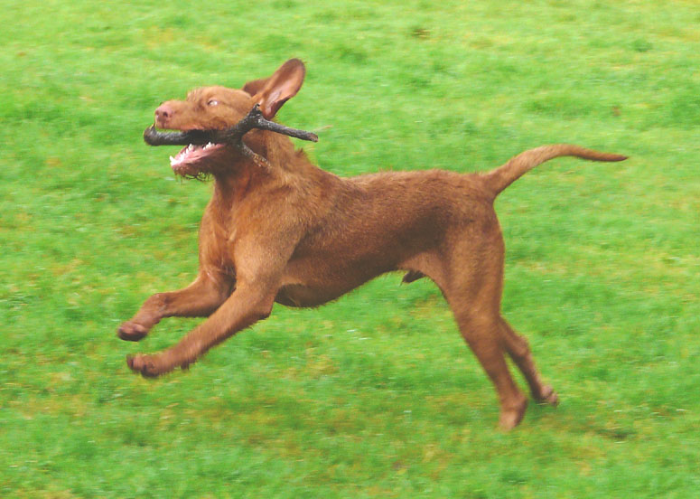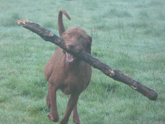After a few tentative first introductions to water (not helped by him plunging into an icy pool one freezing day at the beach) Django now shares his parents love of water and excitedly heads for (and into) the river on his short morning walks. He also regularly demonstrates his HPR qualities and likes to Hunt, Point & Retrieve whenever the opportunity presents itself: