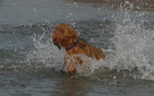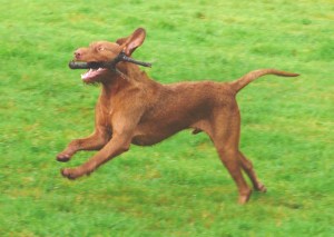 Billie, demonstrating her retrieve from water whilst showing off her perfect top-line. (courtesy of Sharon Newman)
