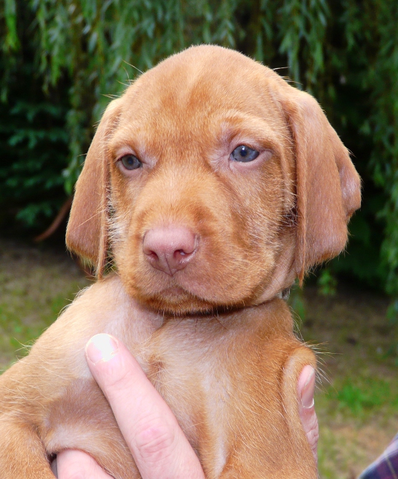 The last two days have seen some wonderful Spring sunshine arrive in Devon allowing us to get the pups outside to experience the big wide world for the first time. The thermometer showed 70 degrees F in the sunshine and the pups were able to spend 4 hours in the fresh air on two successive afternoons. Sadly the forthcoming weather forecast suggests that they may not have another opportunity to get outdoors again for the foreseeable future, but we were just delighted to see them frolic in the fresh air and were also able to take this weeks portraits outside too.