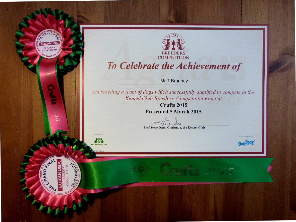 A brief day off from puppy duties saw a terrific and very memorable (historic, even!) day for us at Crufts 2015. Belatarr was one of only 6 Gundog kennels to qualify for the final of what was to be the last ever Kennel Club Breeders Competition. It was a great honour to be invited to take our place in front of a big crowd in the Crufts main arena today, where we were very proud to represent the breed alongside over 200 other dogs from all of the other groups.