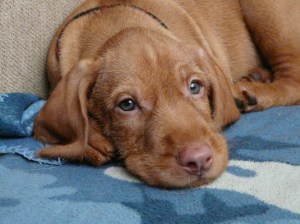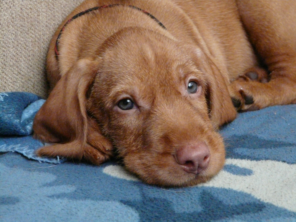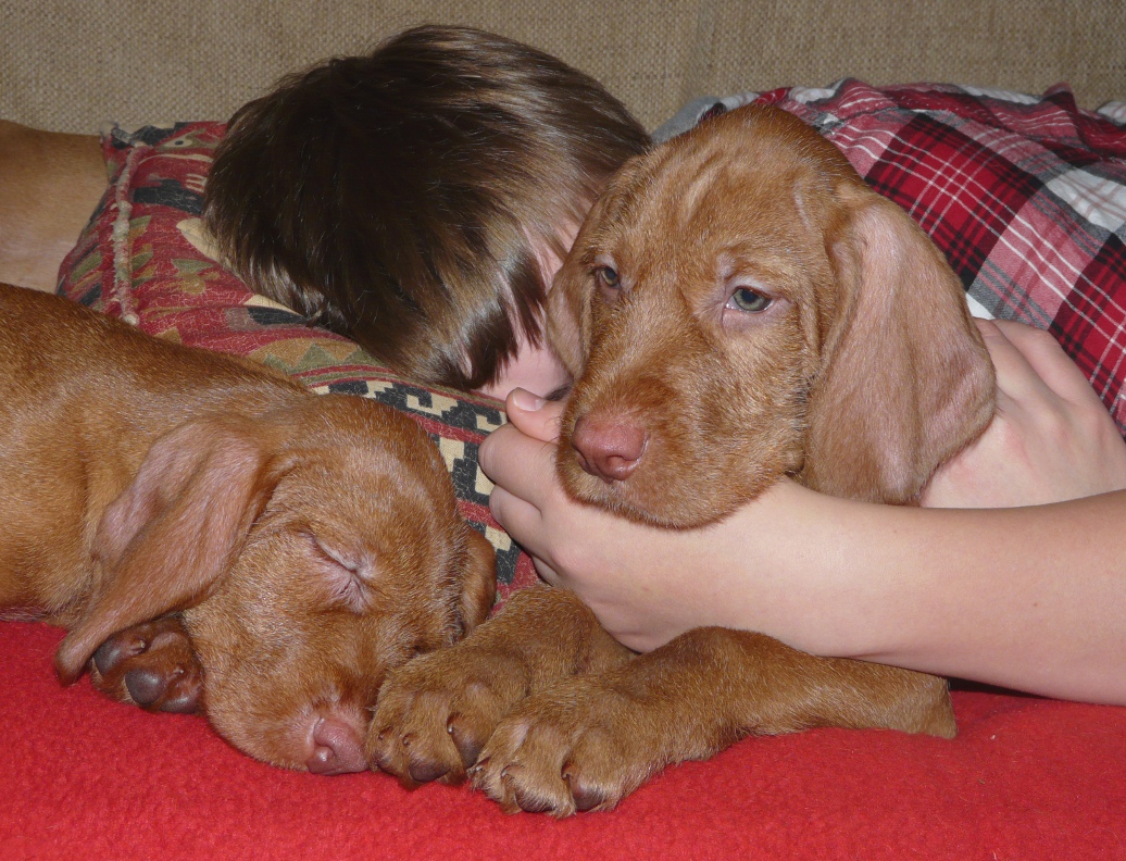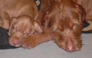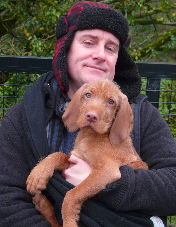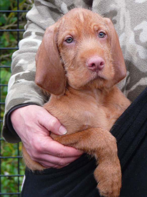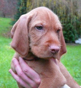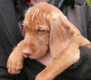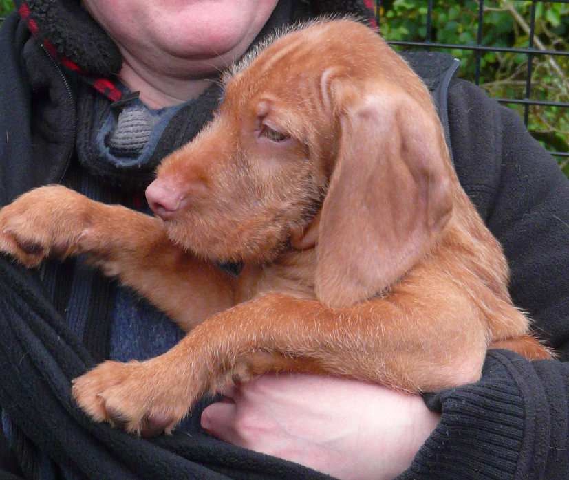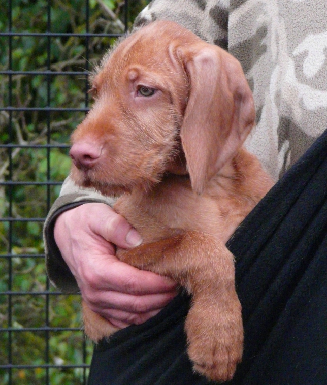 Django also shares his father’s wonderful coat – deep red & harsh – and has a head so similar to Mingus’ that we can’t tell them apart in their 6, 7 and 8 week pics – see below. He’s also very confident, extremely laid back and easy-going, and is already proving to be very keen to learn and eager to train.