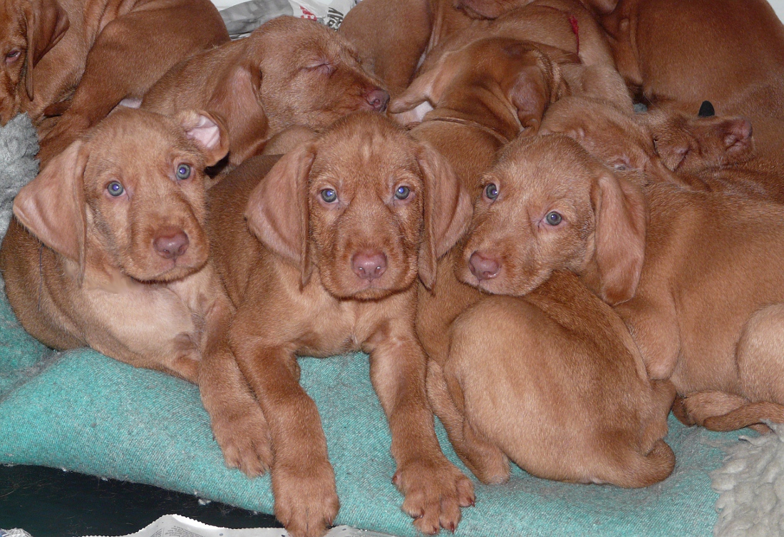 No longer squish-nosed babies, by 6-weeks the Belatarr dozen have become proper young dogs:
