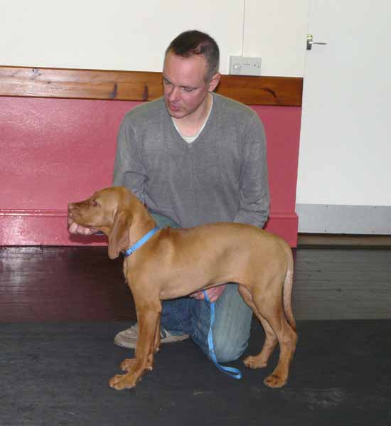 First proper ringcraft session for Phoenix under Judge Glenys Sykes of Daraquist English Setters. Phoenix was typically excited and indeed excitable in the midst of twenty-odd other dogs. She was highly praised for her spirit (!), although a little more control would certainly have made the evening less like a wrestling match and more like a dream walk in the ring…