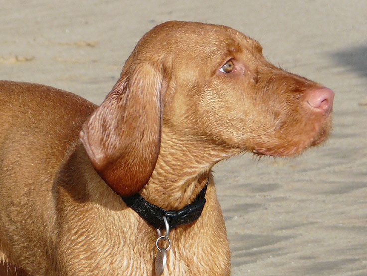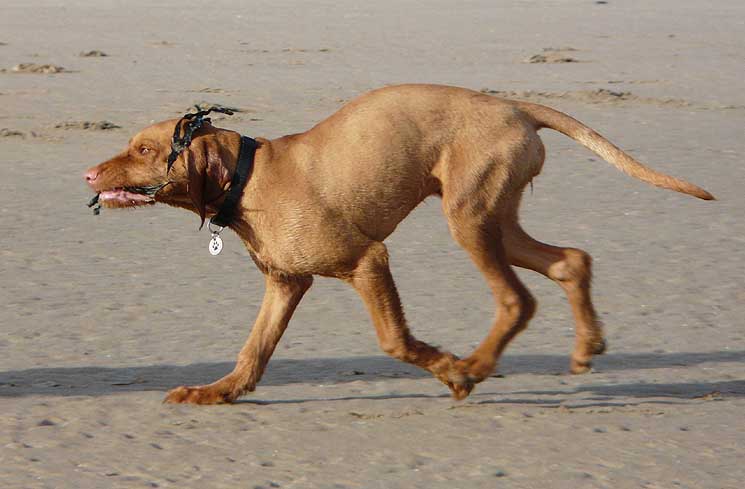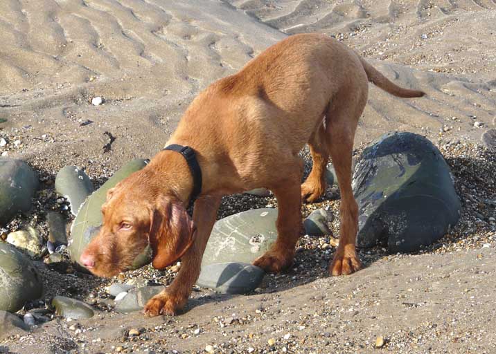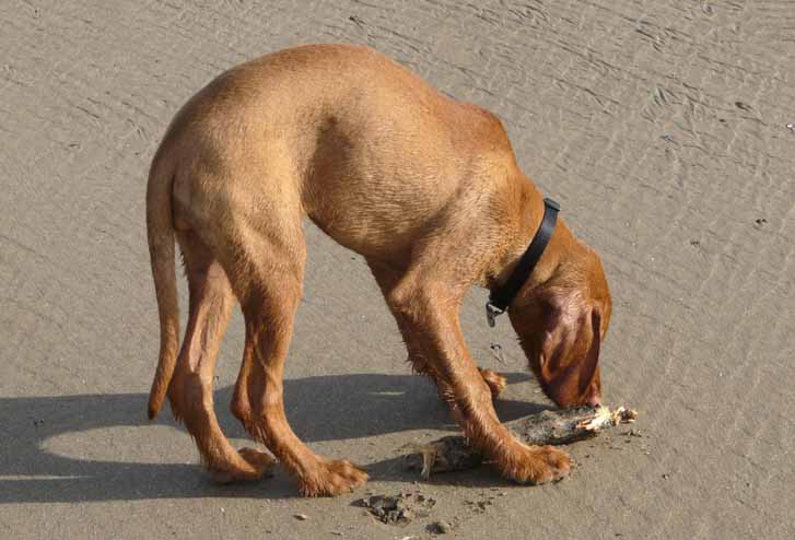 As soon as we hit the beach we met up with two local Vizsla girls and their human companion, so we all had a good chin-wag about all things Vizsla whilst the three girls had an extended sandy romp. Then it was on to the main business of the day: sloshing through sea puddles, lots of digging and hunting for driftwood, watching seabirds in the distance and all the while wondering why the salt water tastes so odd.