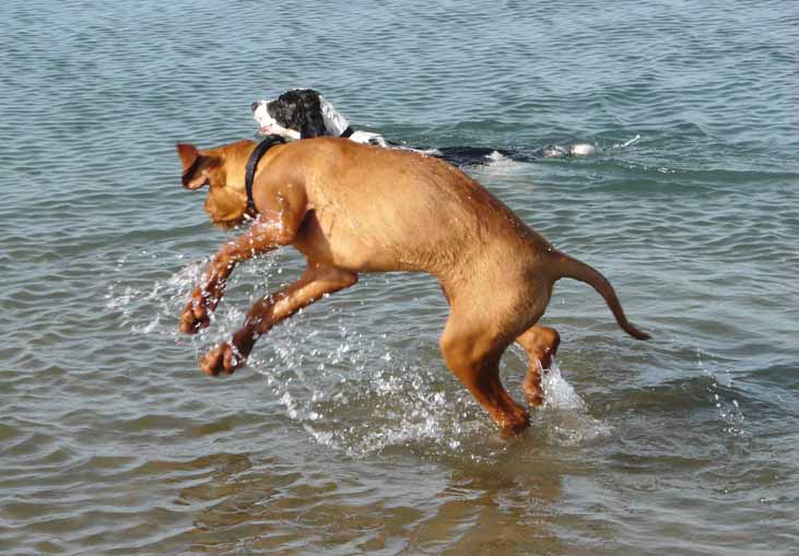 Phoenix swam with a spaniel, splashed in the sea, dug in the sand, hunted for crabs and met a Weimaraner and a Pointer together, making three Pointer Sisters but with better hair.