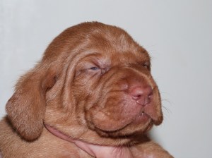 After another week of serious eating and sleeping Lyra’s 9 pups are now just about up on their feet, albeit still very wobbly. Their eyes are also just beginning to open, with Miss Pink leading the way on Day 13. For the most part, they still have their eyes closed and even once they have opened fully it will be another week before they can really see anything besides blurry light and shade.
